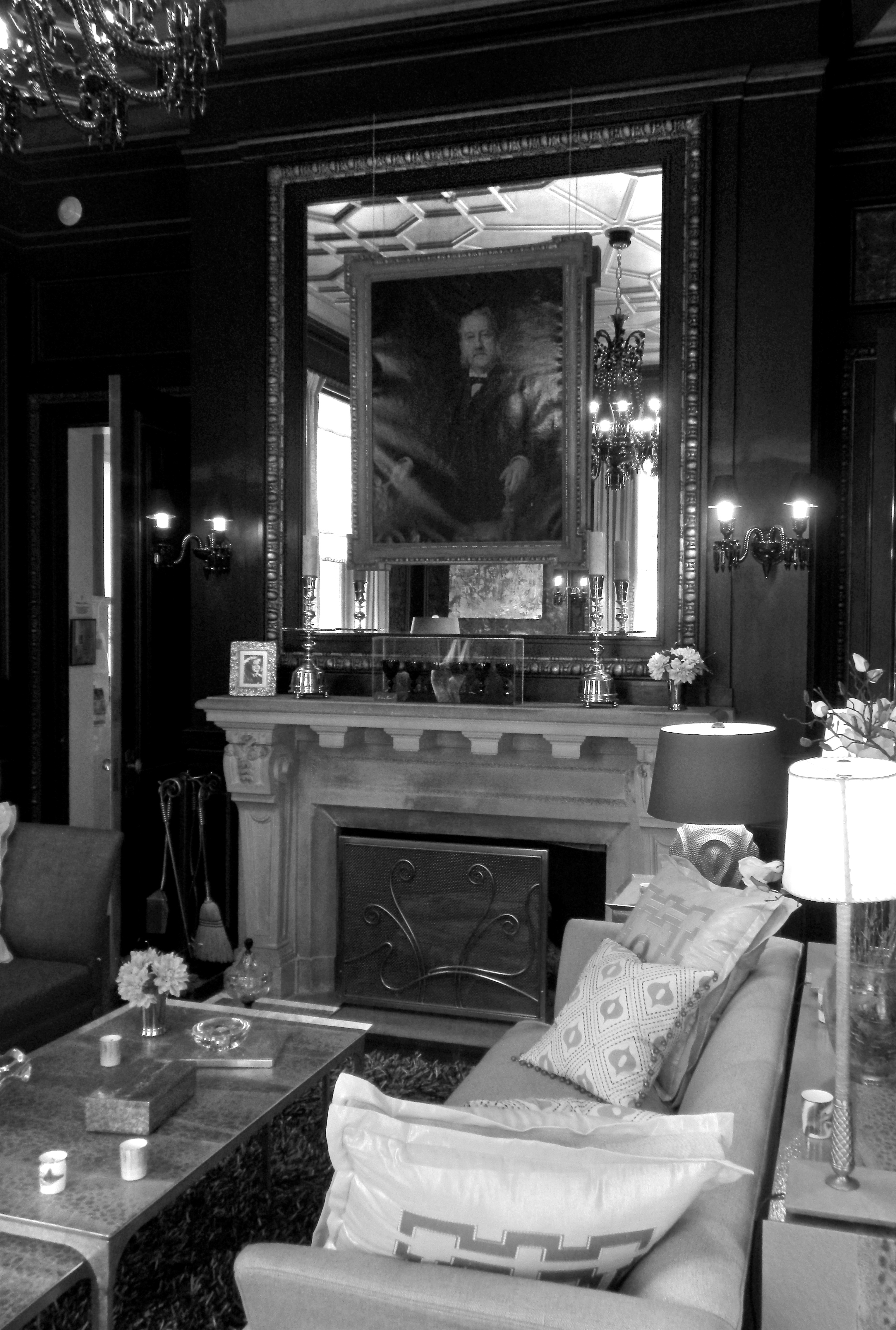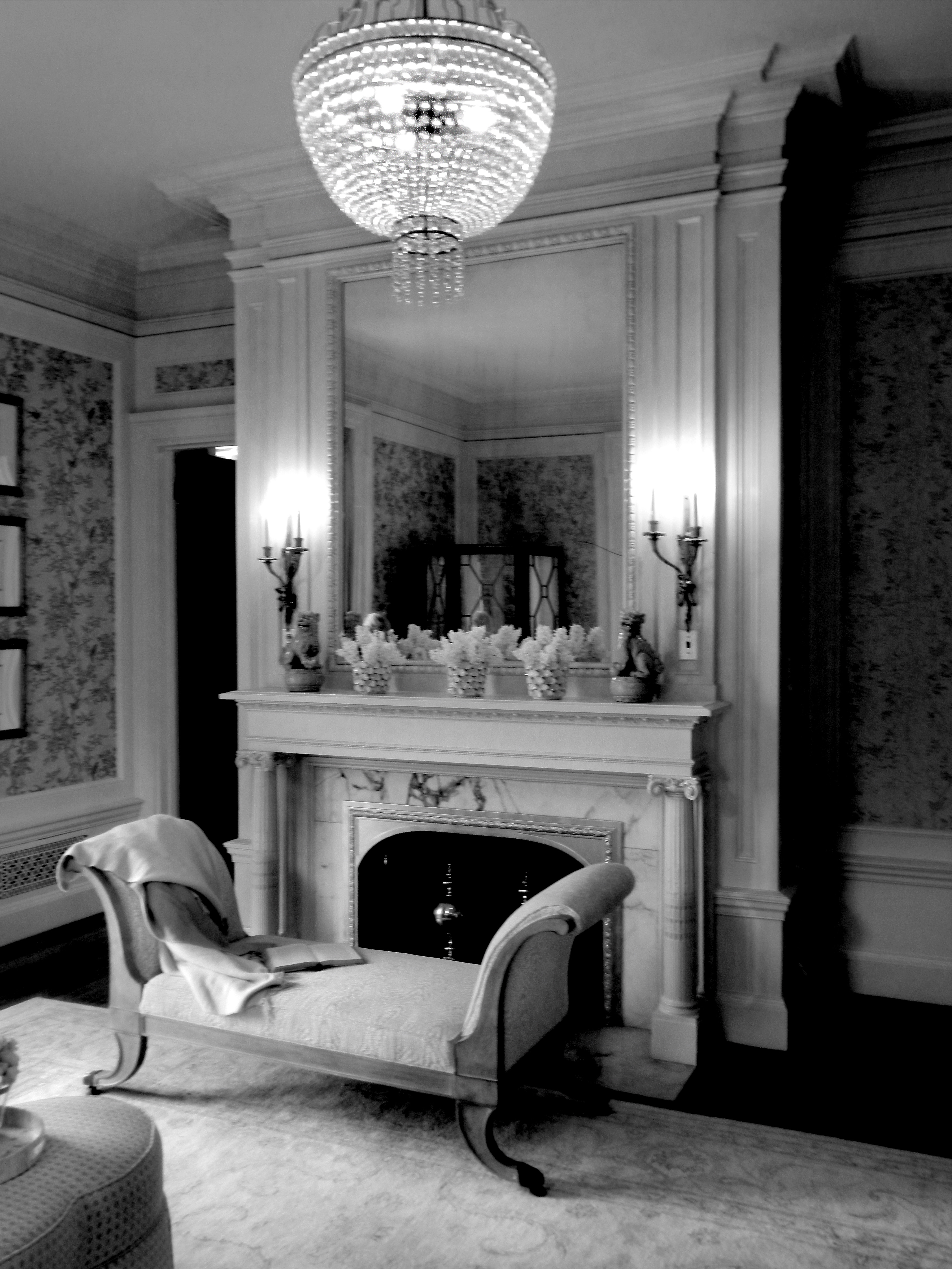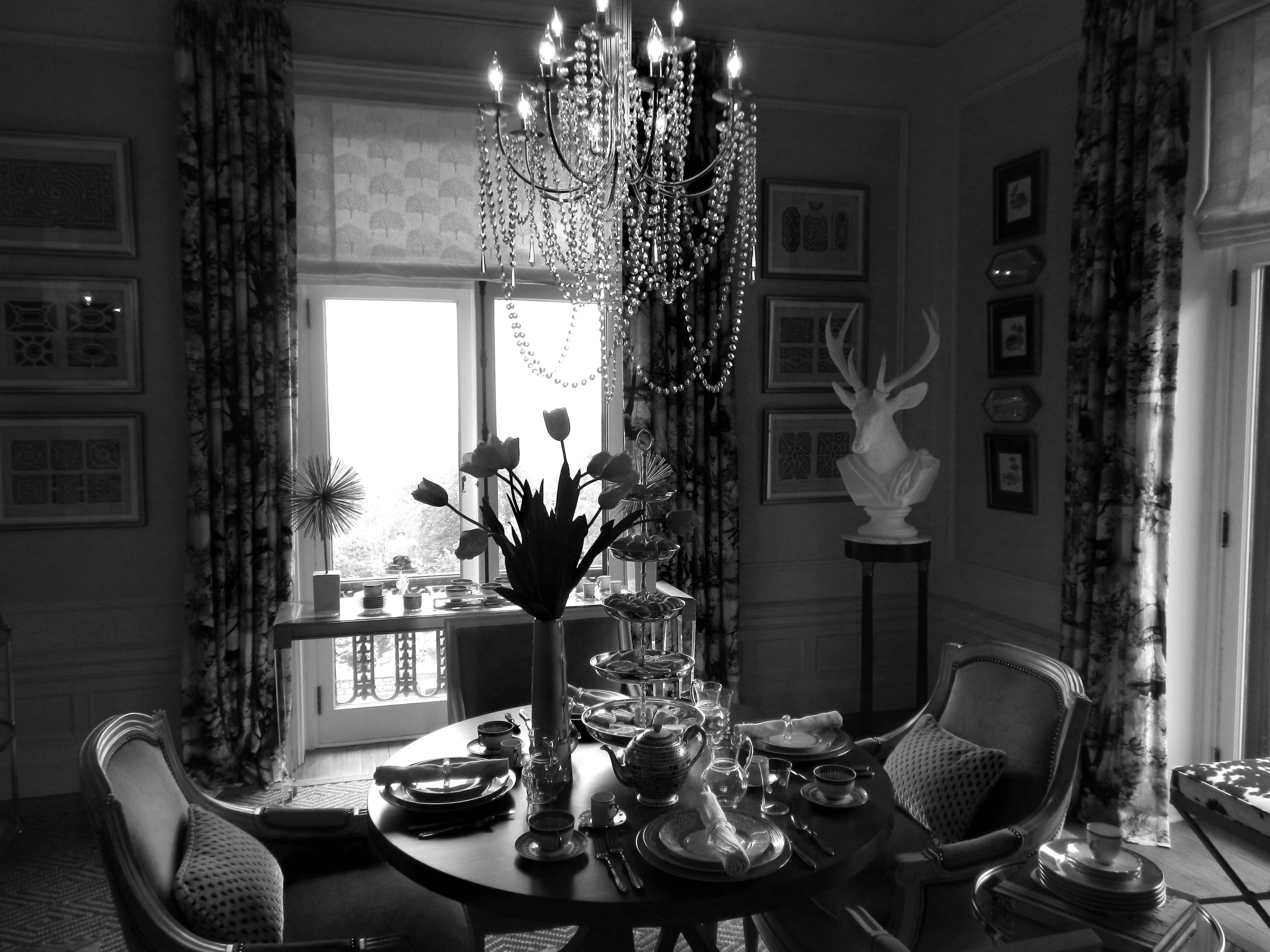 NOTE: All furnishings and interior designs were temporarily set up for the Women’s Association of Morristown Medical Center foundation. Only specific light fixtures, pieces, and wall coverings are original to the house. All fireplaces, doors, and moldings are original. Only certain floors are original or restored. A designer was selected for each space to create an atmosphere, either new or reminiscent of the era. The owner reserves the right to keep the room as is, or change it as he moves forward with the restoration of Blairsden Mansion.