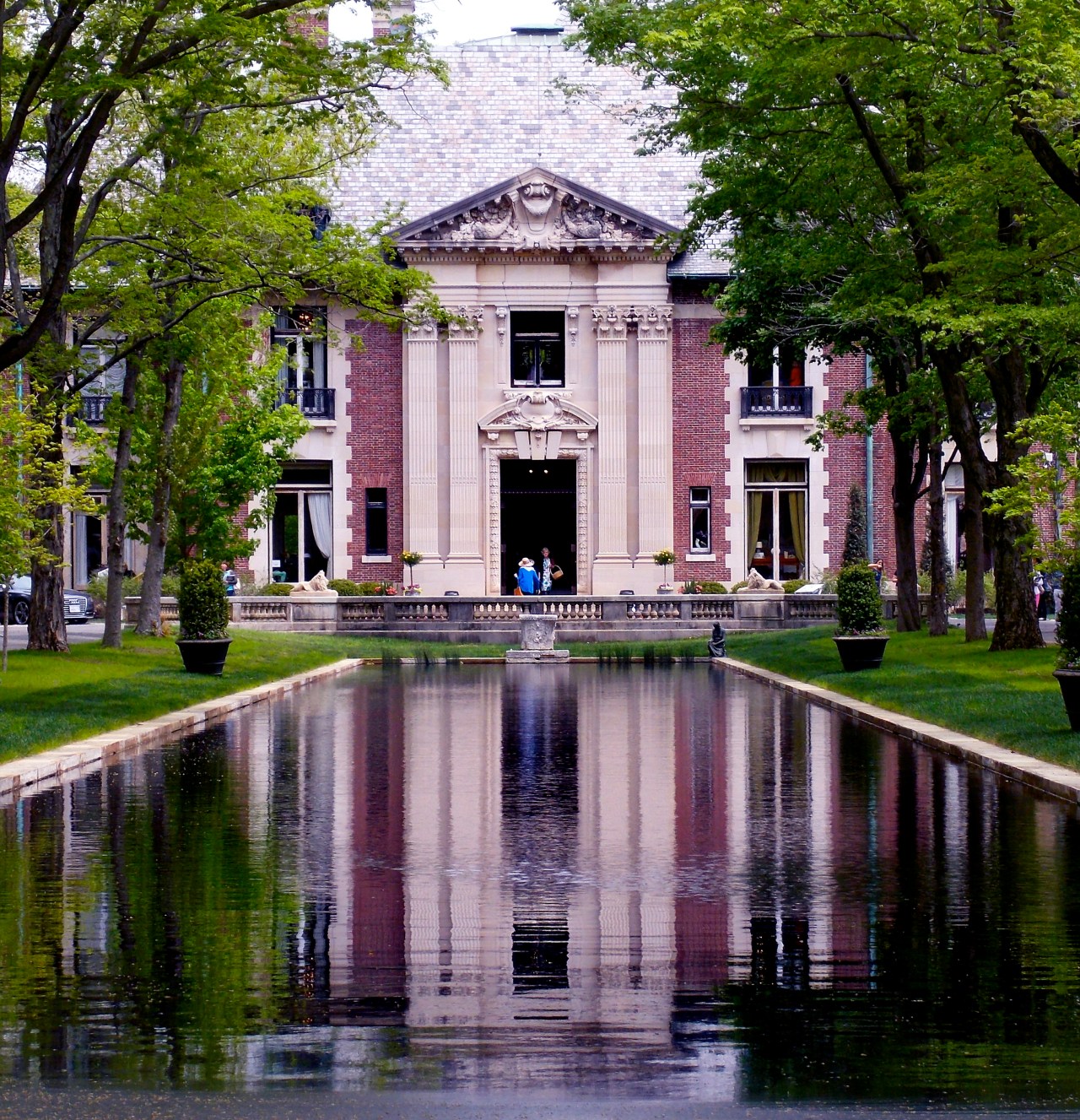 Once you passed over the dam, A large gate welcomed you to a long shaded driveway that trailed along the perimeter of the elbow shaped lake up around the back of the hillside to the reflection pond. Later, Blair constructed a second entrance in the center of Peapack-Gladstone with a massive gate and courtyard adorned with fountains and elaborate walls. This driveway is one full mile from the gate to the entrance of the 534-acre home. Both driveways met at the 300-foot reflection pond leading to the bronze front doors. But before reaching the doors, guests were greeted by the resident swans Elsa and Lohengrin.