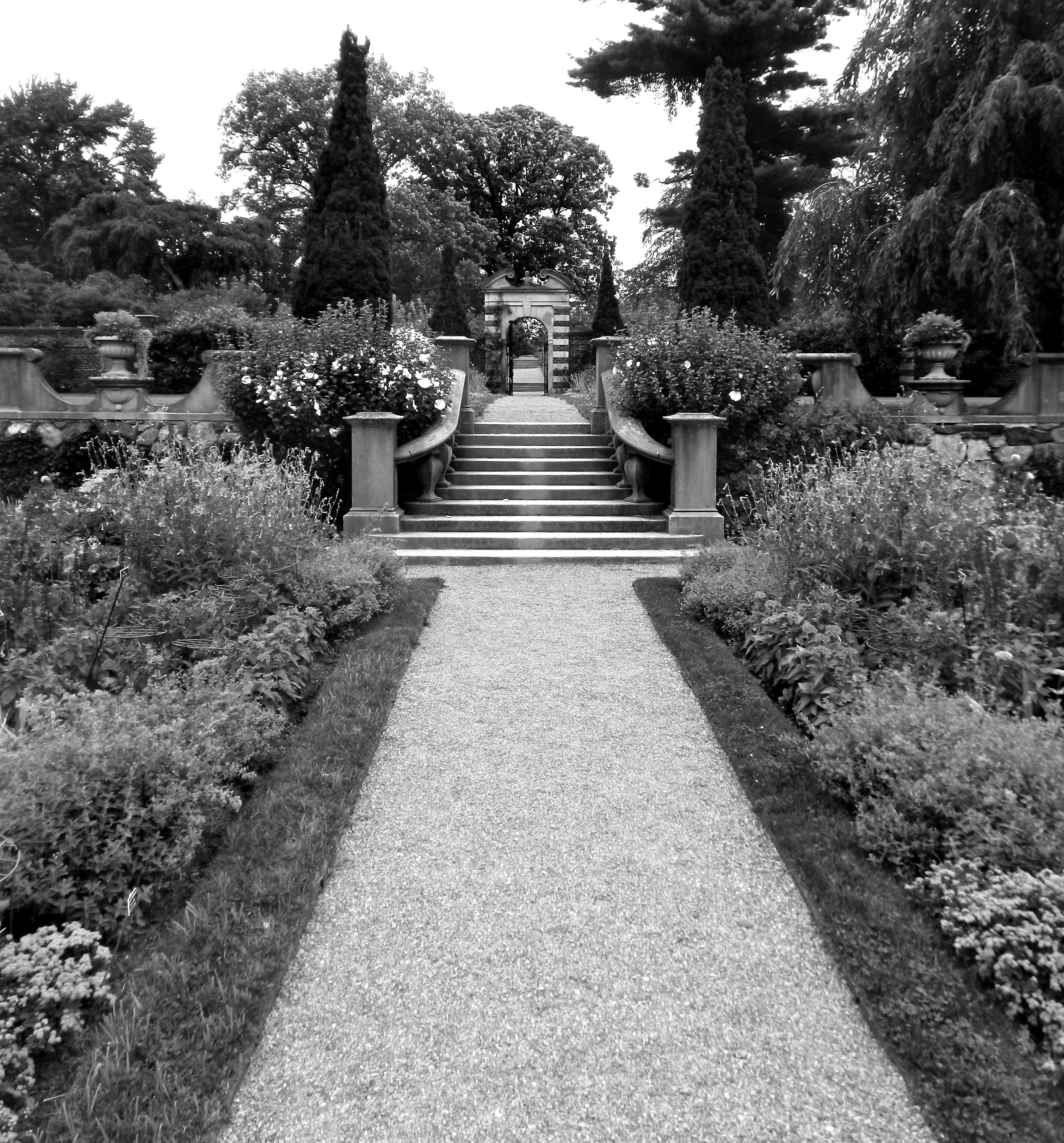 There are more gardens gracing the grounds, but the most incredibly jaw-dropping features are the tree-enclosed paths. The never-ending paths disappear into the darkness of tightly enclosed tree branches that feel plucked from an enchanted movie. The first of such paths left me without words.