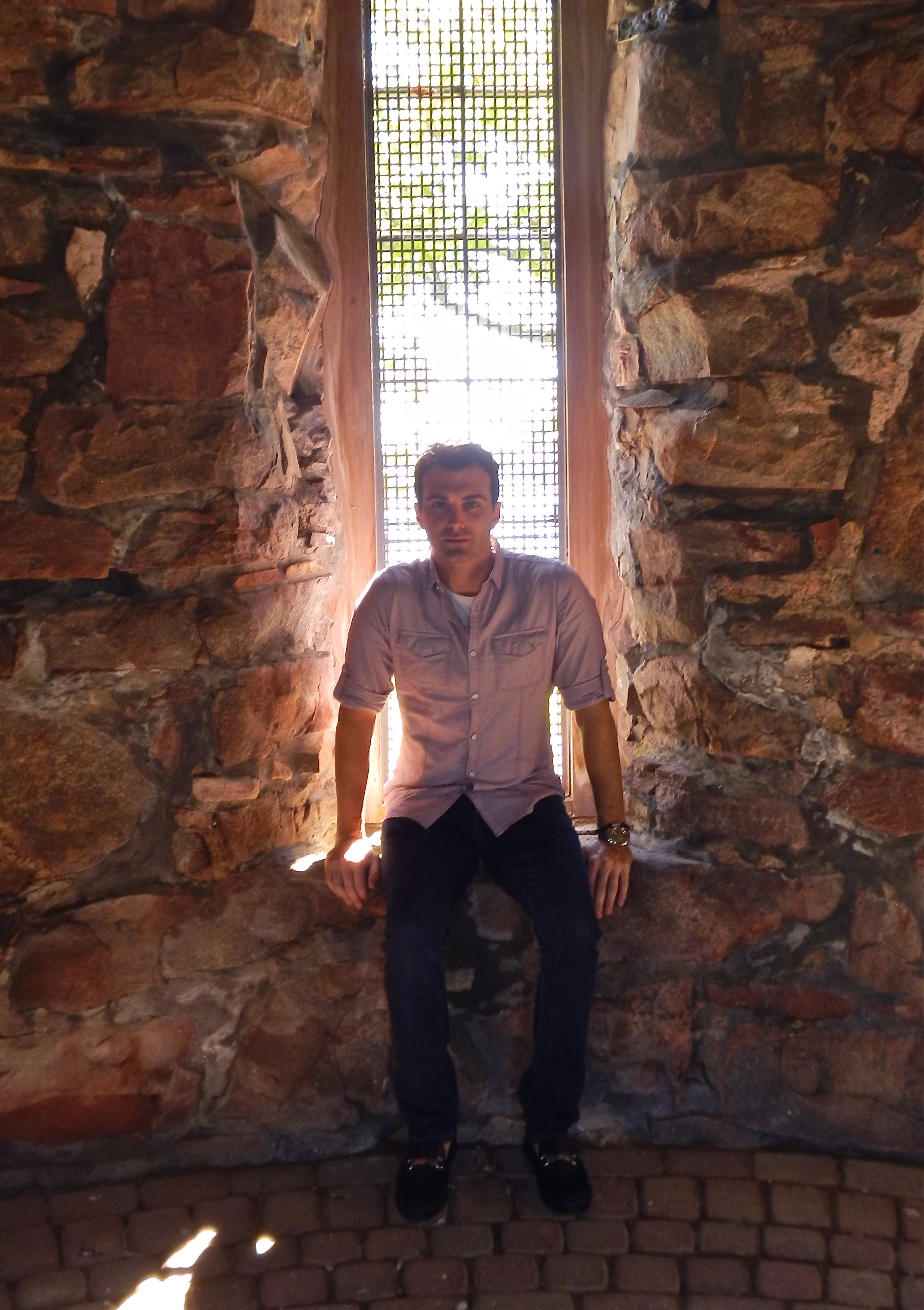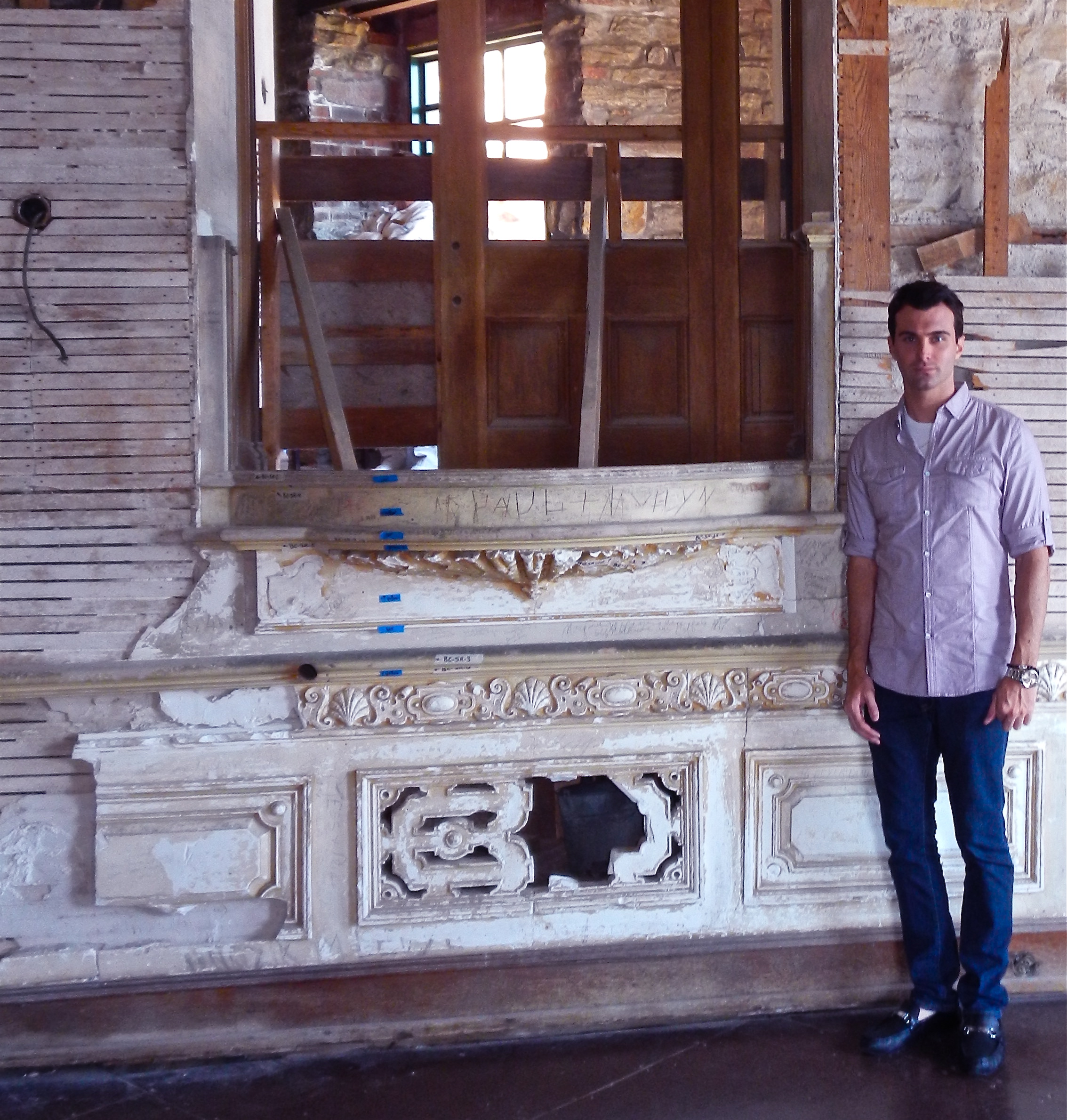 Matthew J. Niewenhous in deteriorated Alster Tower. This was the living space of the Boldts while the castle was being built.