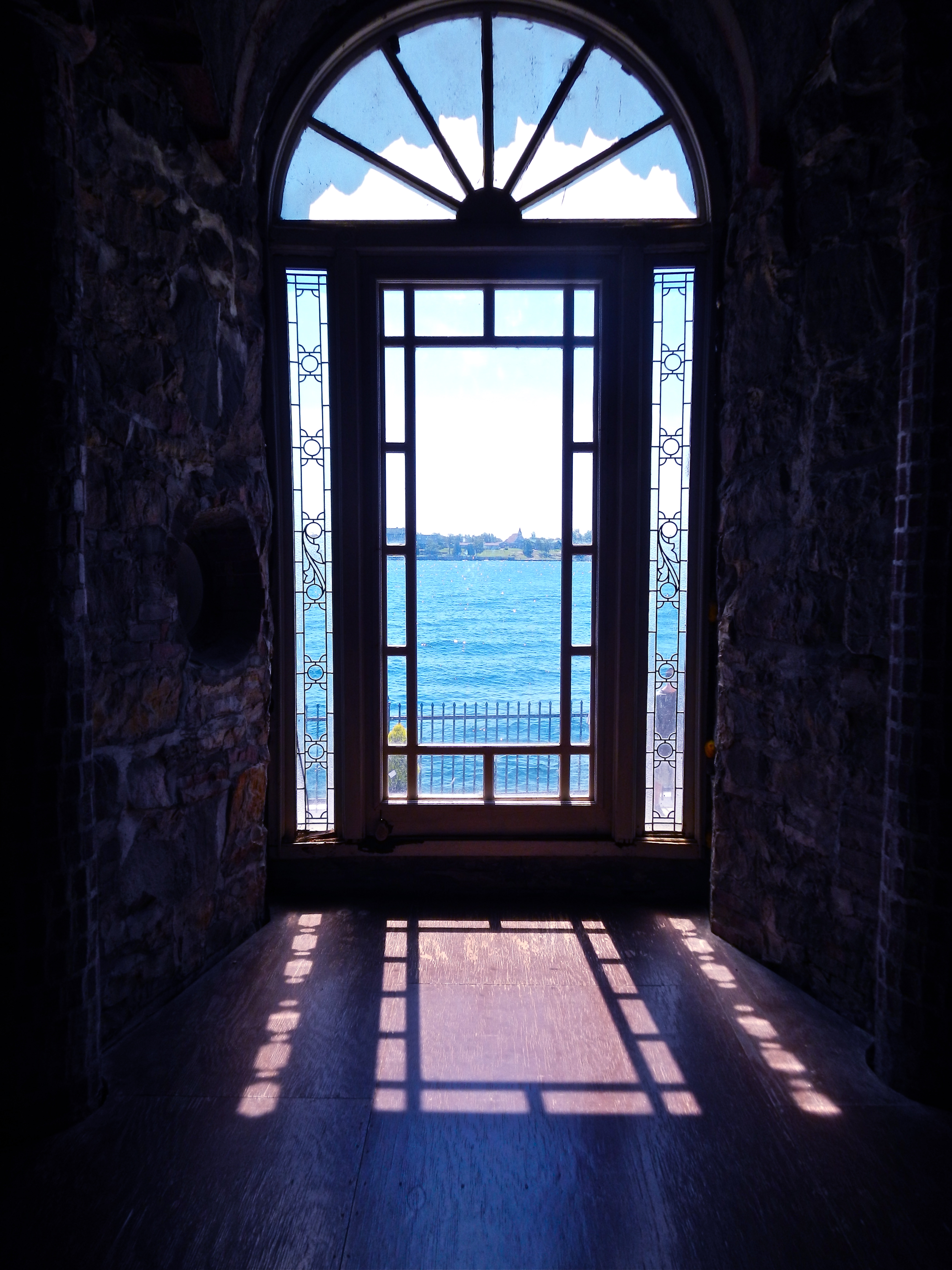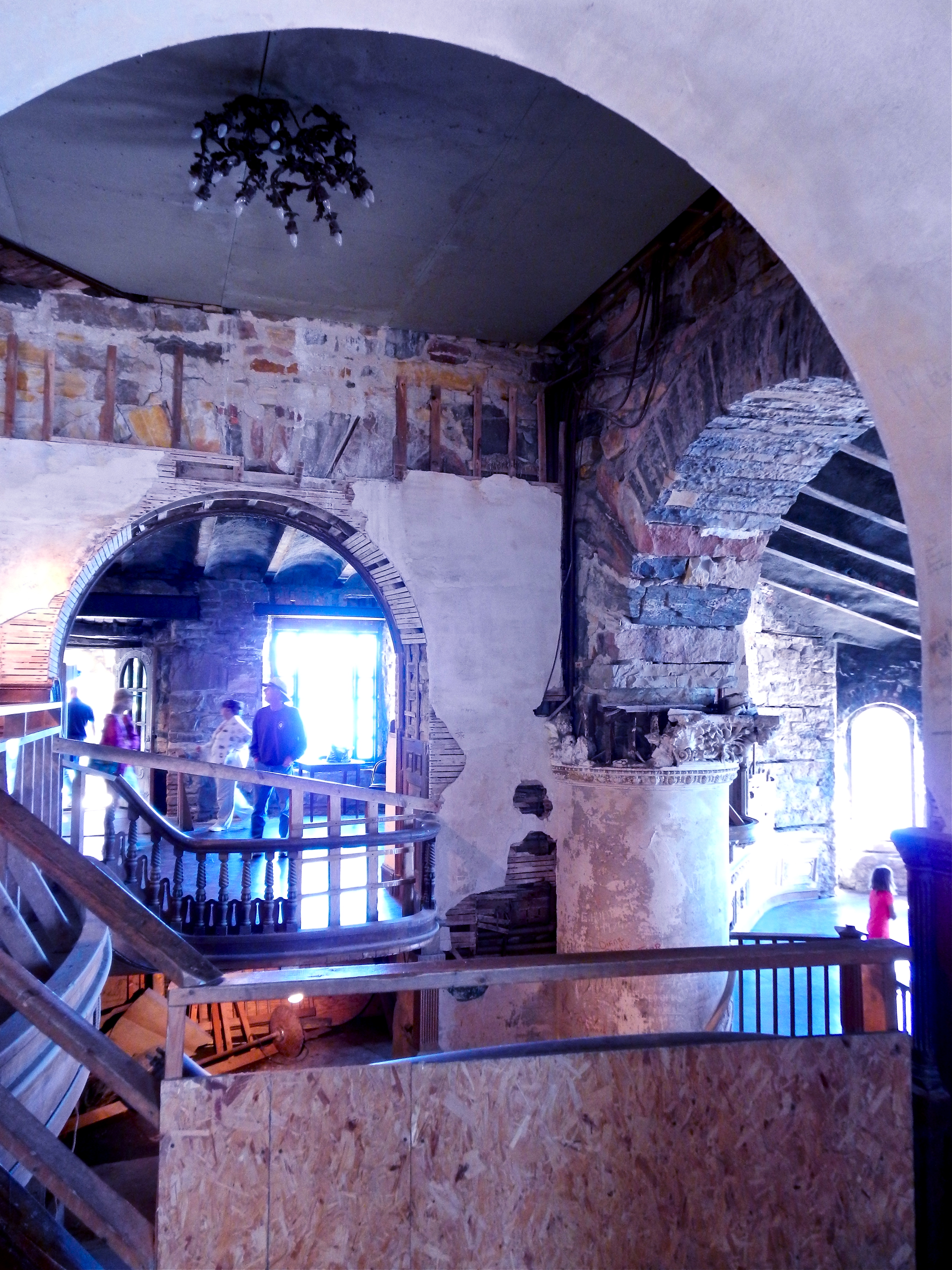 View of staircase form third floor balcony. In total, Boldt Castle has six floors.