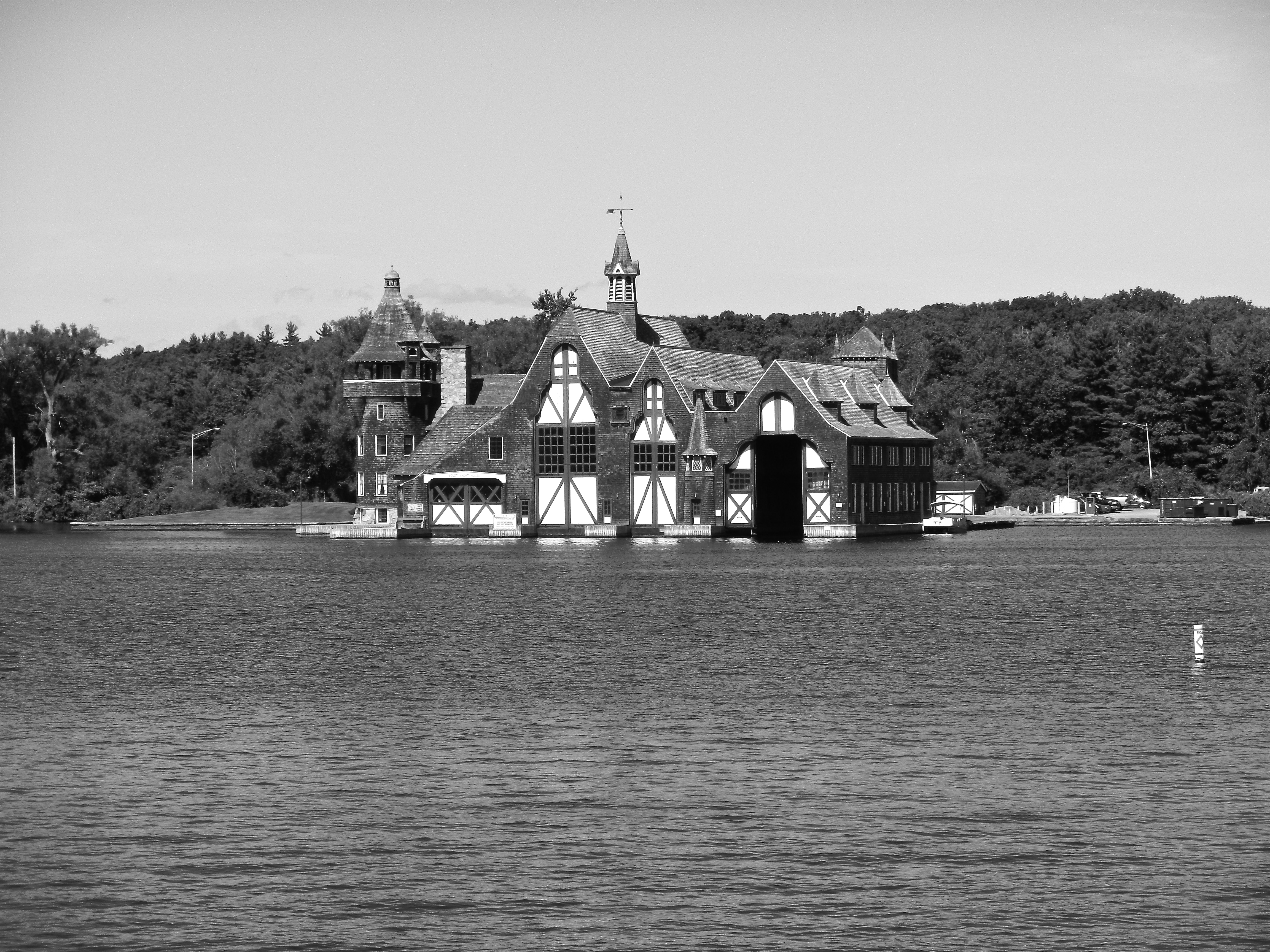The most famous boathouse belonged to George Boldt. Located across the river from Boldt Castle on Heart Island was the Boldt family yacht house on Wellesley Island. One of the largest in the country, the yacht house is the first boathouse to be recognized as a national historic landmark. Inside, 128-foot boat slips housed the Boldt’s yachts. There were also several rooms for the boat crews to live in the structure.