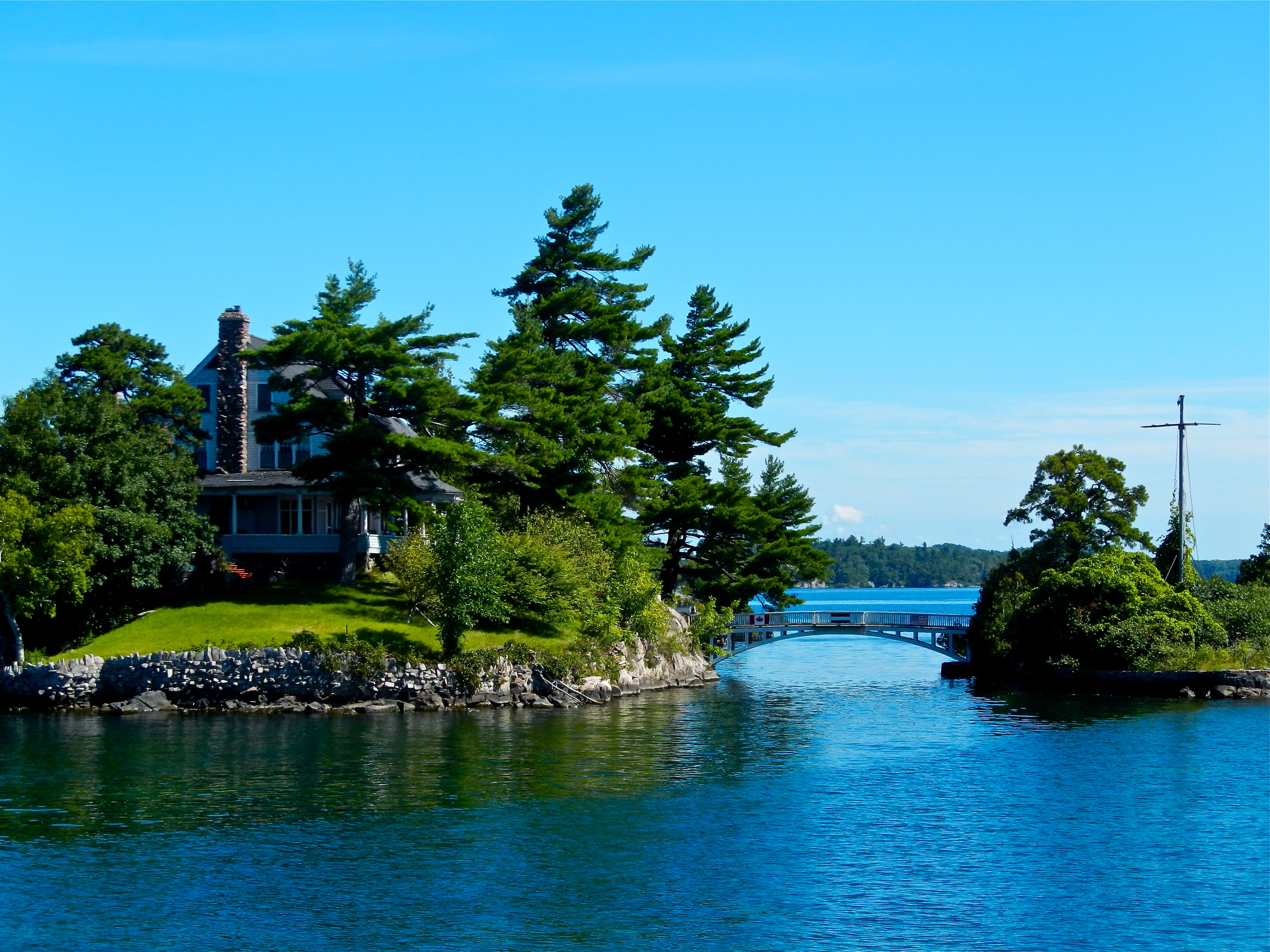 Smallest international bridge in North America. The house sits on a Canadian island and the bridge takes you to a small American island.