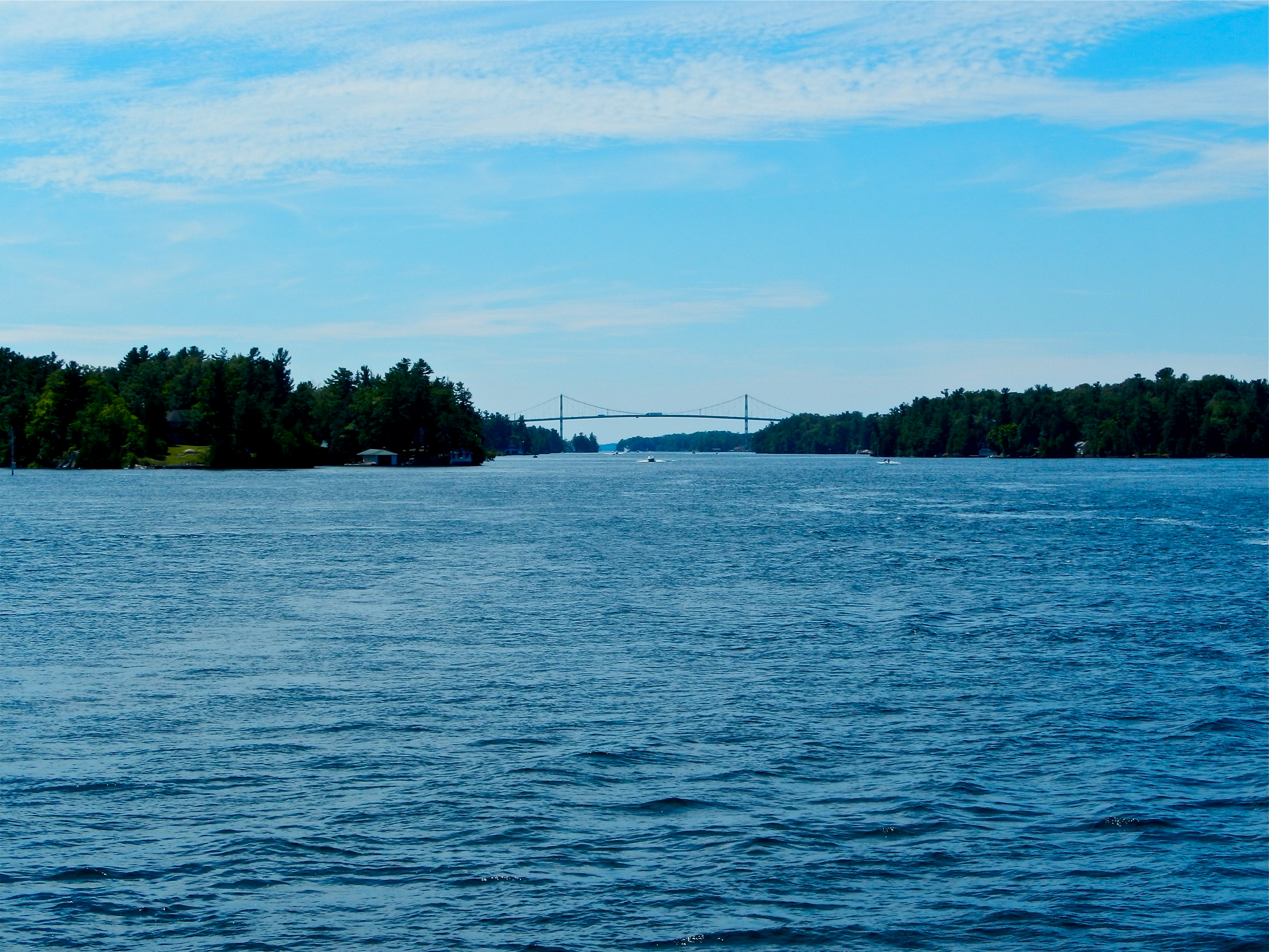 Bridge from Hill Island, Ontario to mainland Canada. Wellesley Island on the American side of the border.