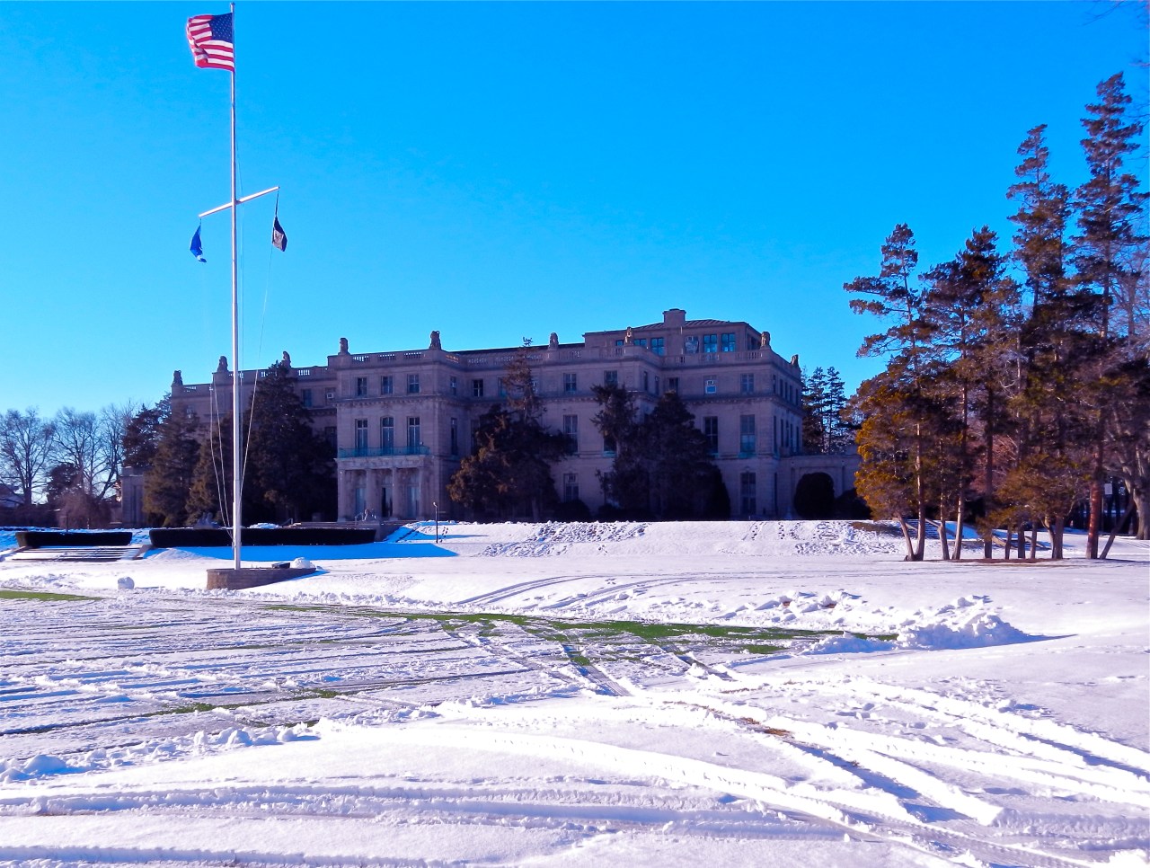 North facade of Shadow Lawn. In the past decade, close to $800K was spent to restore the roof above the pillars.